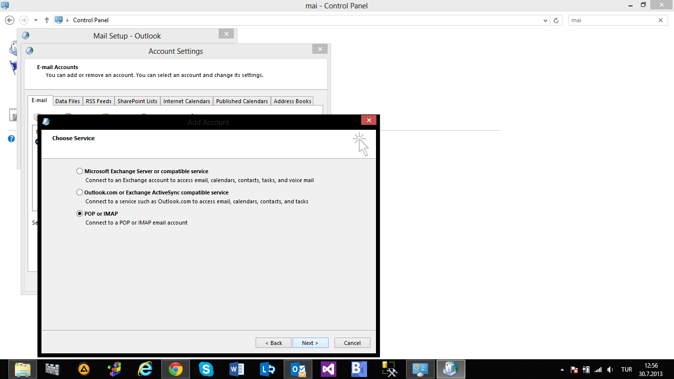 “POP or IMAP” seçeneğini seçip ilerleyin.