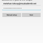 Mail uygulamanızı açın ve mail adresi ve şifre kısmını doldurup “Manuel Setup” a tıklayın.