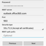 Mail adresiniz ve şifreniz için ayrılan alanı doldurun. IMAP adresi : outlook.office365.com . IMAP portu alanına 993 girin ve SSL(Accept All Certificates)’yi seçin.