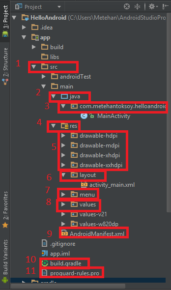 11) proguard-rules.pro: Proguard kurallarının olduğu dosyadır. ProGuard’ın ne olduğu aşağıda açıklanacaktır.